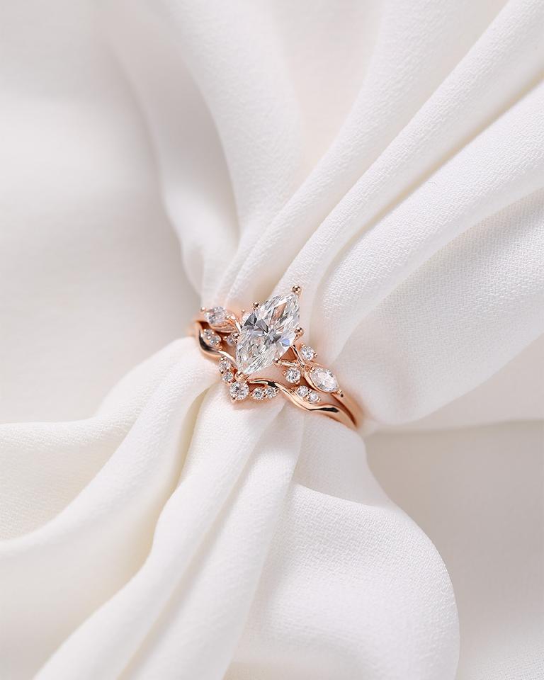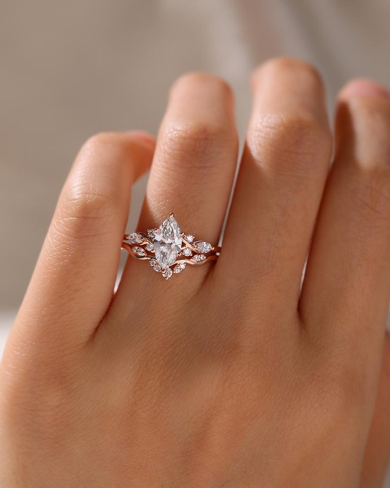 12x6mm Marquise Cut Moissanite Diamond Engagement Ring in Rose Gold | Unique Bridal Wedding Jewelry