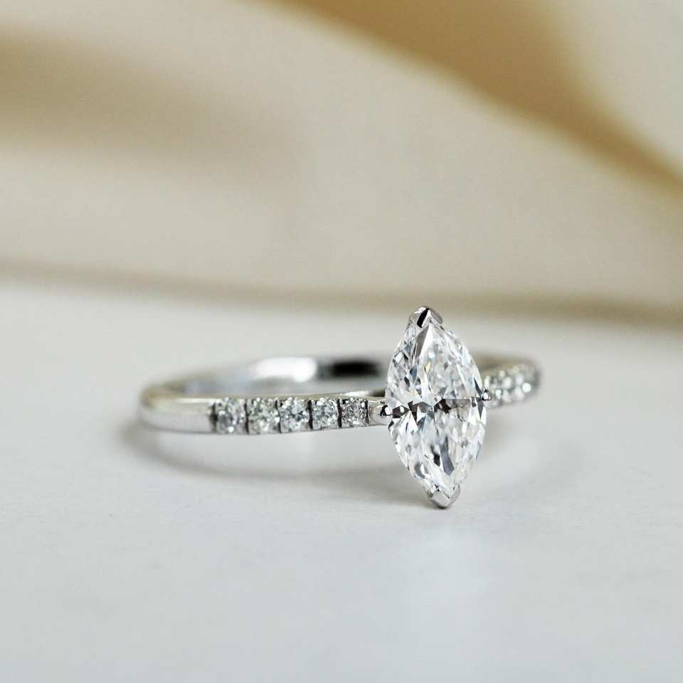 12x6mm Marquise Cut White CZ Solitaire Engagement Ring with Pave Band Silver Bridal Wedding Anniversary Proposal Women Jewelry