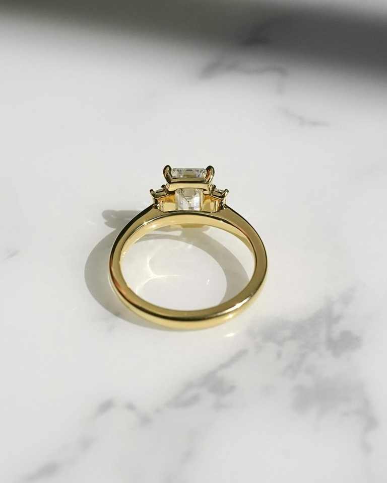 12x8mm Emerald Cut White CZ Engagement Ring Three Stone Gold Band with Baguette Side Stones