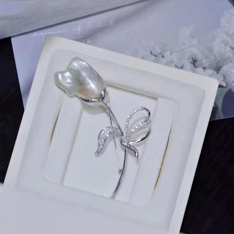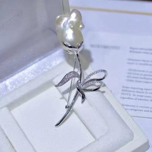 13-15mm Freshwater Pearl Chest Flower Brooch Random Tulip Pattern Crystal Rhinestone Shell Material Fashionable Atmospheric