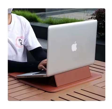 13.3 Laptop Stand Sleeve 14 Inch Shockproof Computer Case Multifunctional PU Leather Magnetic Liner Bag Fashionable Carry Clutch