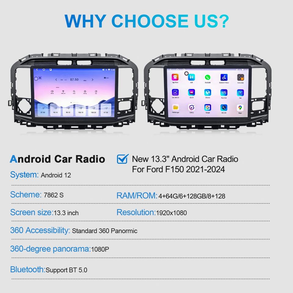 13.3" Multimedia Android Car Screen for Ford F150 Raptor 2021 2024 Auto Radio Head Unit Monitor Carplay Navigation New Upgrade