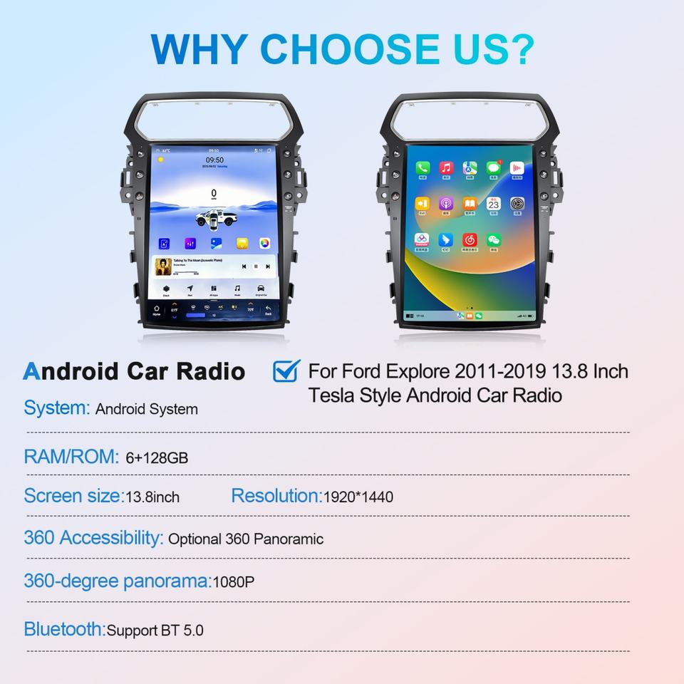 13.8 Inch Touch Screen Android Car Radio Auto Head Unit Monitor Navigation Carplay Multimedia Player for Ford Explorer 2011 2019