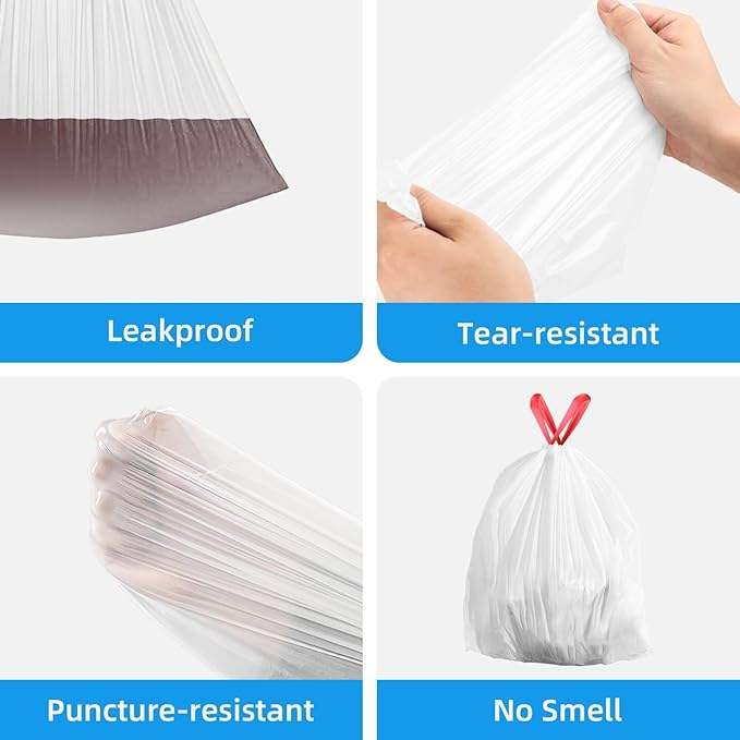 HENGCHUN PACK 13 Gallon Drawstring Trash Garbage Bag Unscented Moisture-Proof HDPE Shrink Plastic for Home Office Kitchen