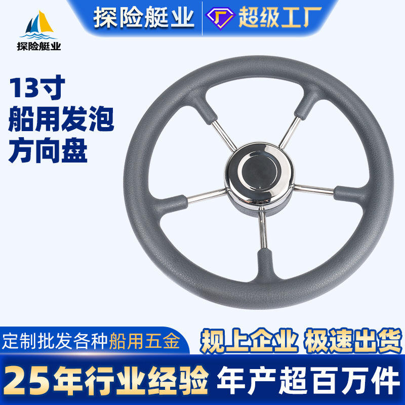13-Inch Stainless Steel Gray Foam Grip Marine Steering Wheel Rudder Yacht Accessories Hardware Cross-Border E-Commerce Product