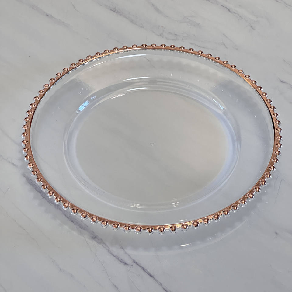 13 Inches Pink Clear Round Acrylic Gold Beaded Rim Charger Plates Plastic Plates for Wedding Party Table Decor