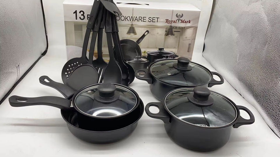 13-Piece Granite Stone Non-Stick Cookware Set Include Frying Pan Soup Pot Milk Pan Spatula Complete Cooking Set