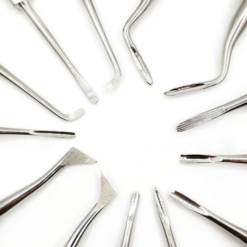 13-Piece Stainless Steel Curved Dental Elevator Set Manual Root Lift Teeth Extraction Instrument for Surgical Use