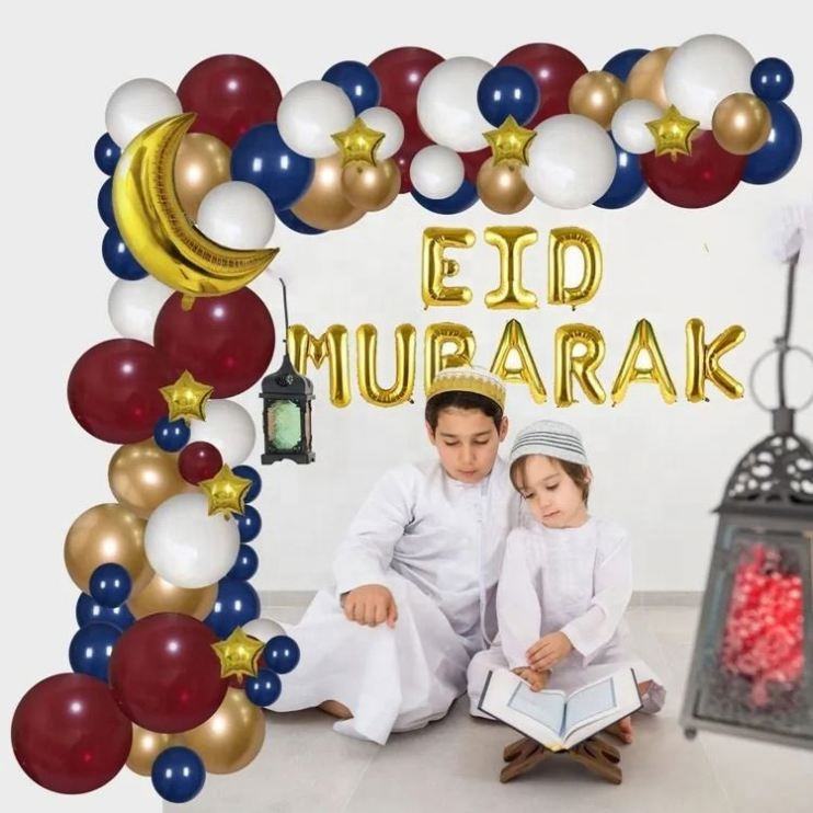 131PCS Eid Mubarak Balloons Arch Kit Includes White Blue Gold 23cm Latex Balloons Moon Star Ramadan Christmas Easter Party