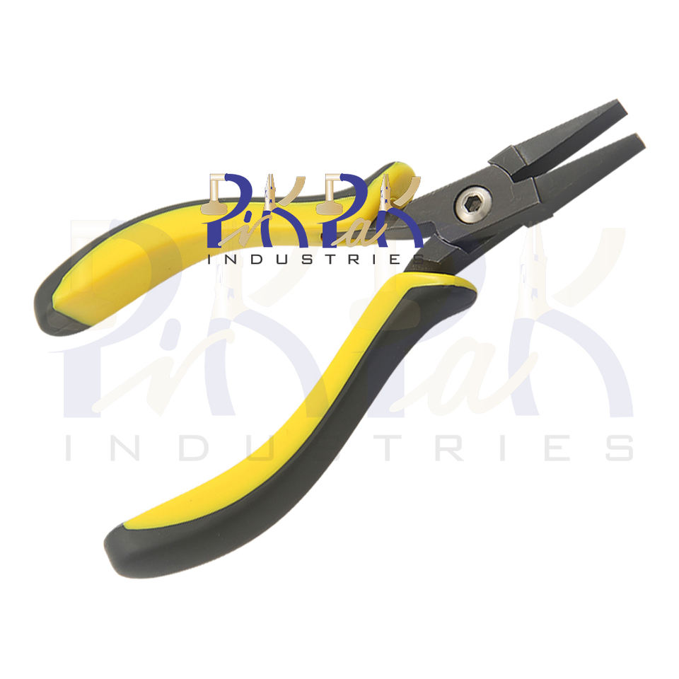 133mm Flat Nose Precision Pliers with Smooth Jaws Yellow Black Ergo Handles Lap Joint Jewelry Black Oxide for Crimping Fishing