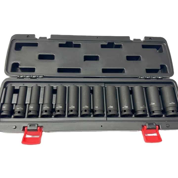13Pcs 1/2 Inch Drive Deep Wall Bolt Extractor Set Mechanics Tool With 6-Point Sockets and Custom Logo in Plastic Box