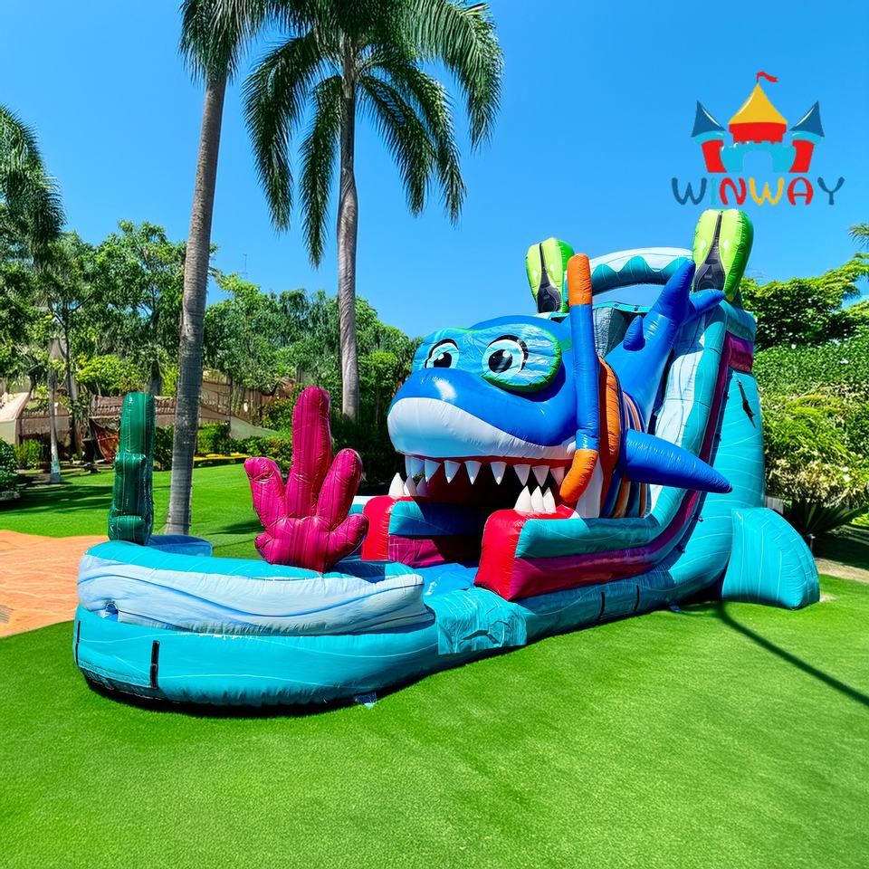 13ft Single Lane Water Slide Shark Inflatable Water Slide with Pool, Outdoor Kids Water Playground for Summer Challenge & Fun