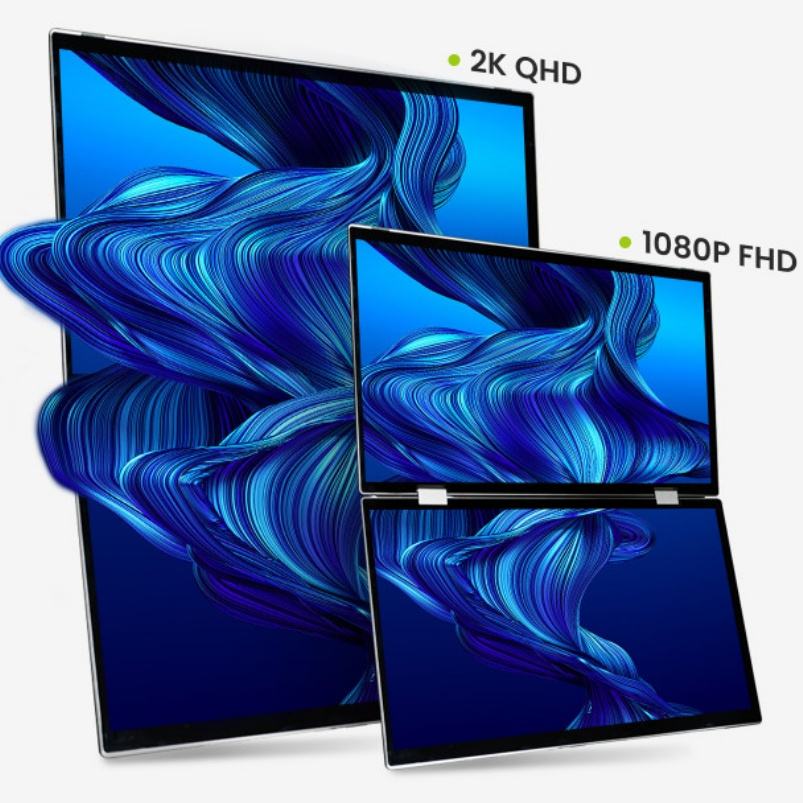 14'' 15.6'' 2K QKD Dual Views Laptop External Monitor with 360 Dgrees Foldable Design for Editor, Equity Analyst