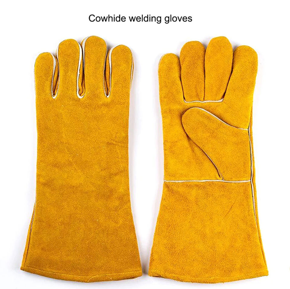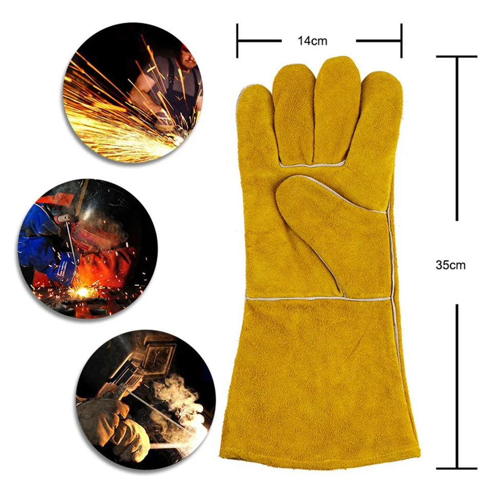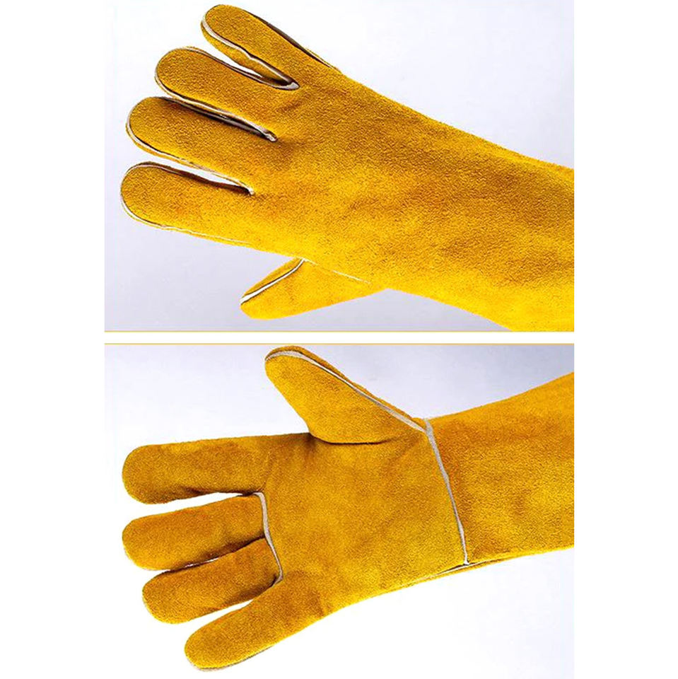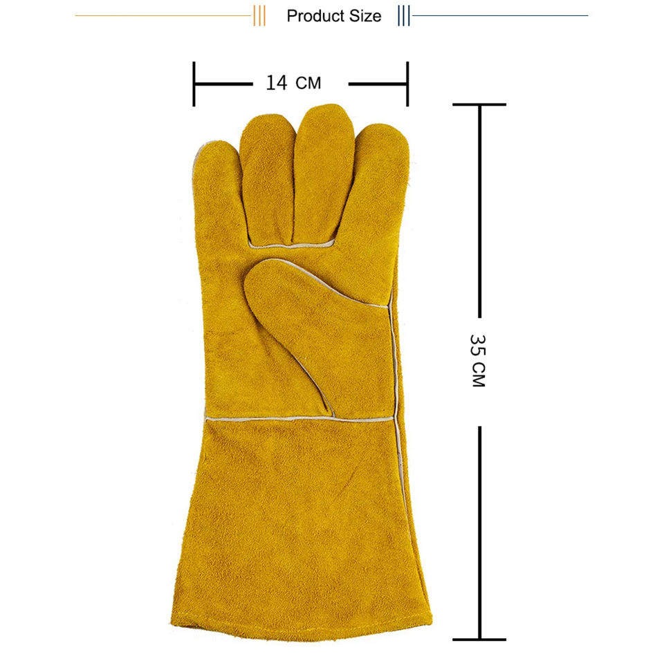 14-16 Inch Yellow Cow Split Leather Welding Gloves Grade Heat Resistant Fireproof Anti-Impact En420 Standard Cotton for Welders