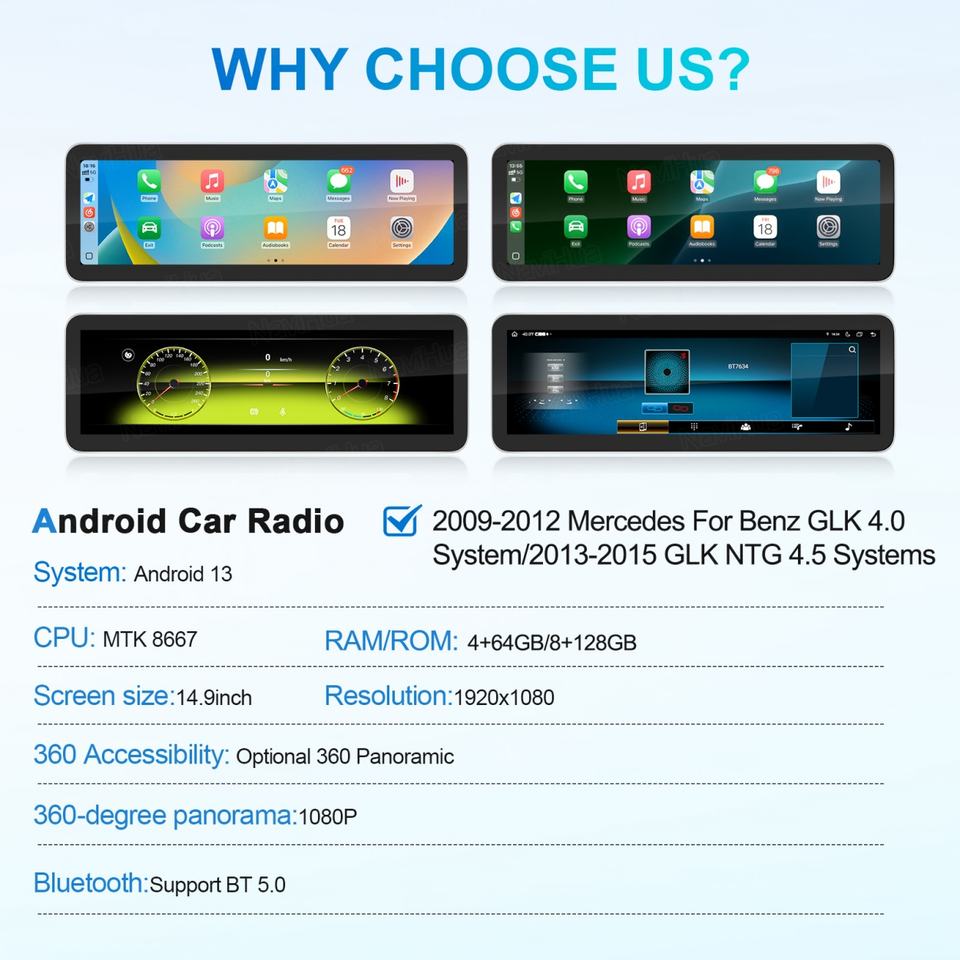 14.9 Inch Android 13 Car Navigation for Benz GLK 2009-2015 Head Unit with CarPlay Android Auto 4G DSP Car DVD Player Car Stereo