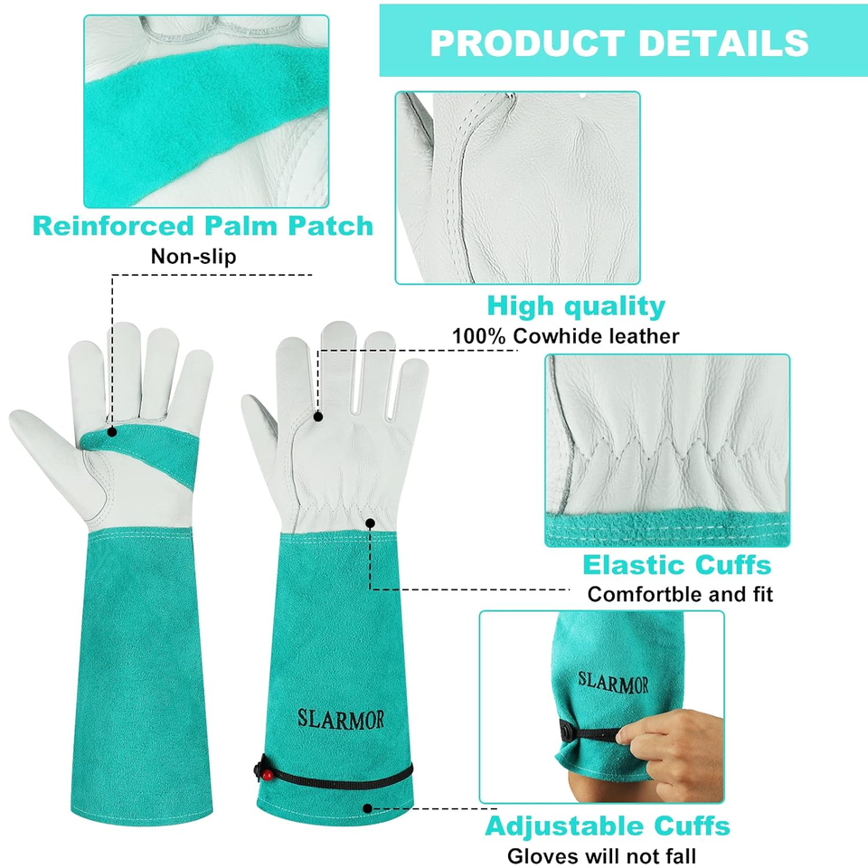 14 Inch Leather Gloves Fire Heat Resistant Long Sleeve for Mig Gas for Daily & Outdoor Use for BBQ Oven Grill Fireplace