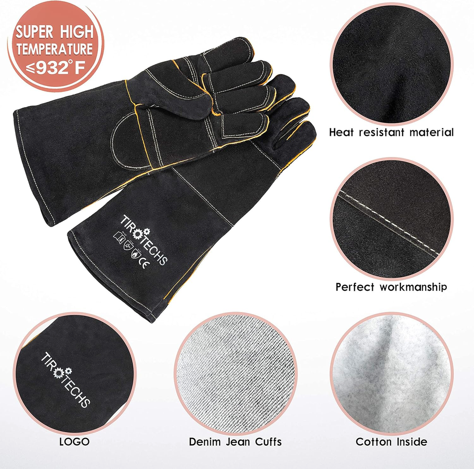 14 Inch Leather Welding Gloves Fire Heat Resistant Long Sleeve for Mig Gas for Daily & Outdoor Use for BBQ Oven Grill Fireplace