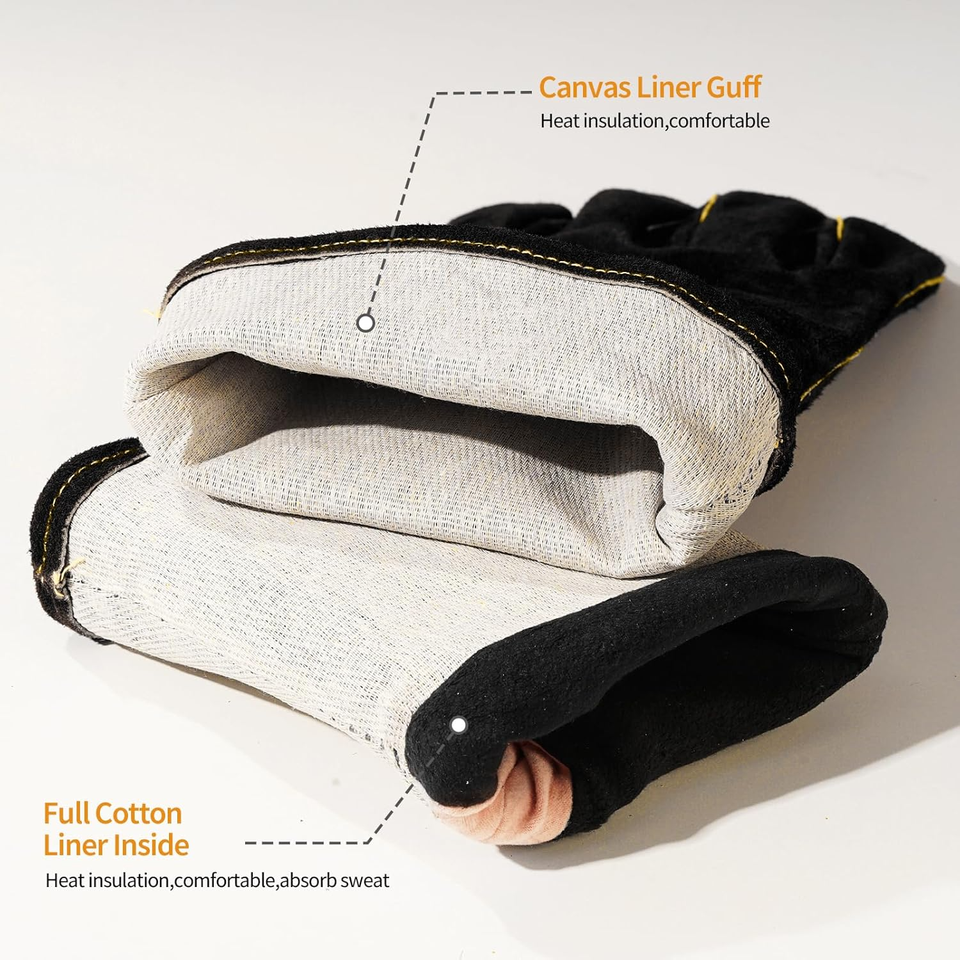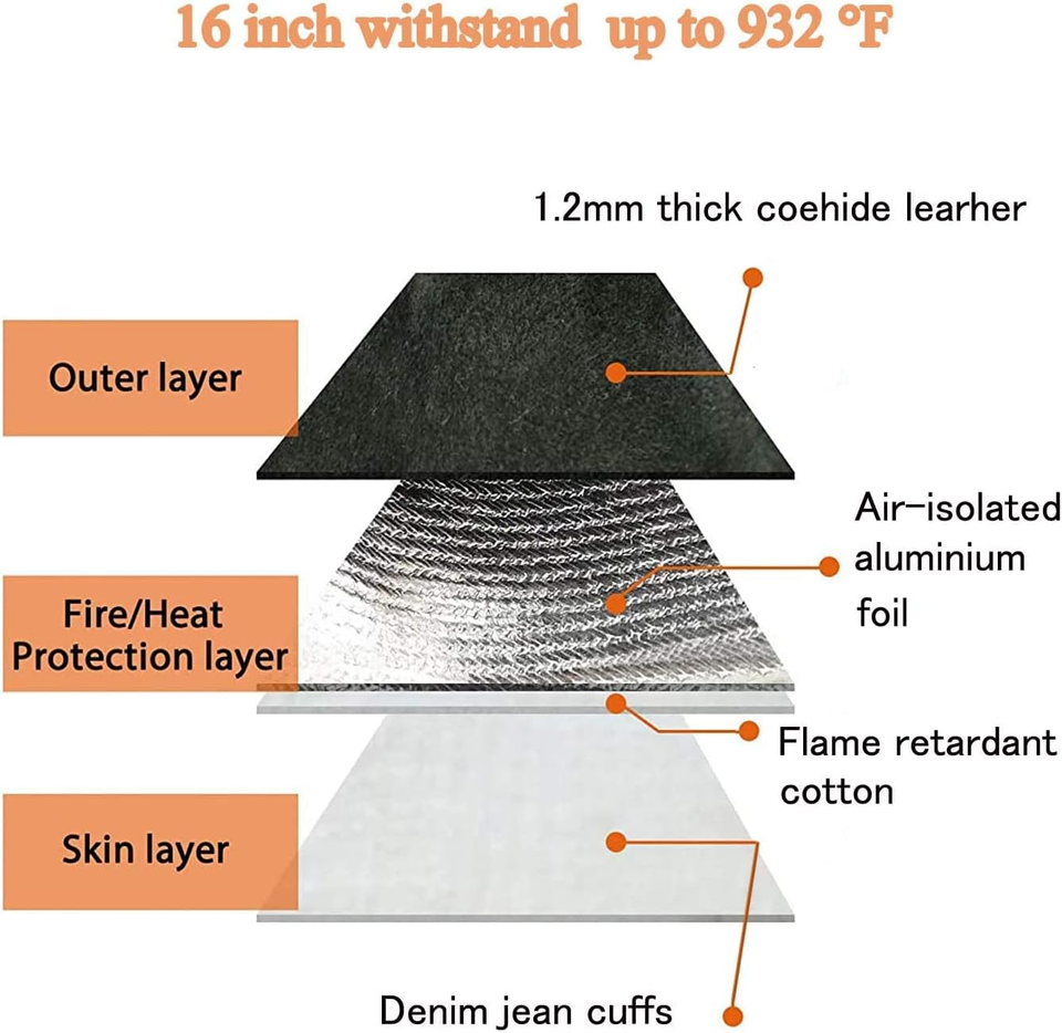 14 Inch Leather double palm Gloves Fire Heat Resistant Long Sleeve for Mig Gas for Daily & Outdoor for BBQ Oven Grill Fireplace