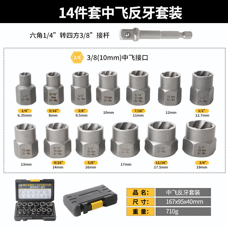 Select nowmodel: 14-piece nut removal reverse thread socket set (black box)