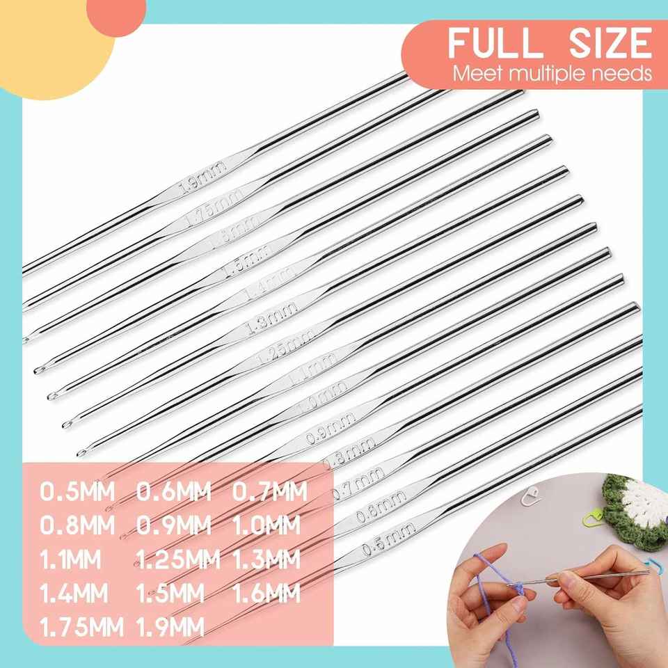 14 Set Steel Hook 0.5-1.9Mm Sweater Scarf Clothing Crochet Tool Lace Knitting Needle