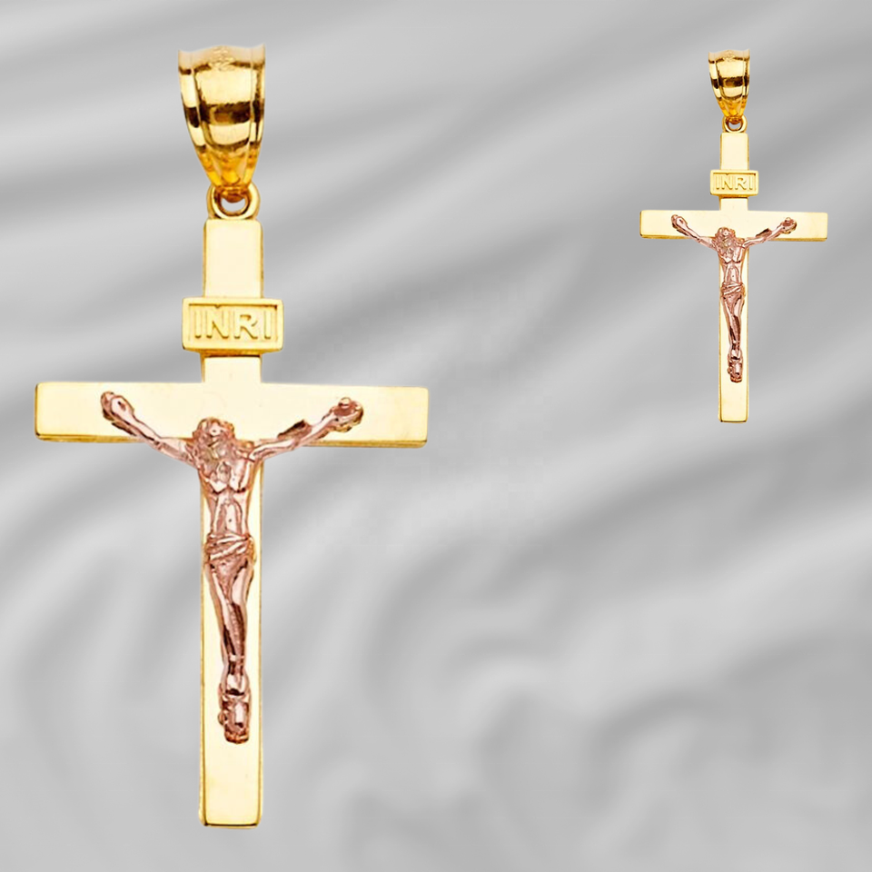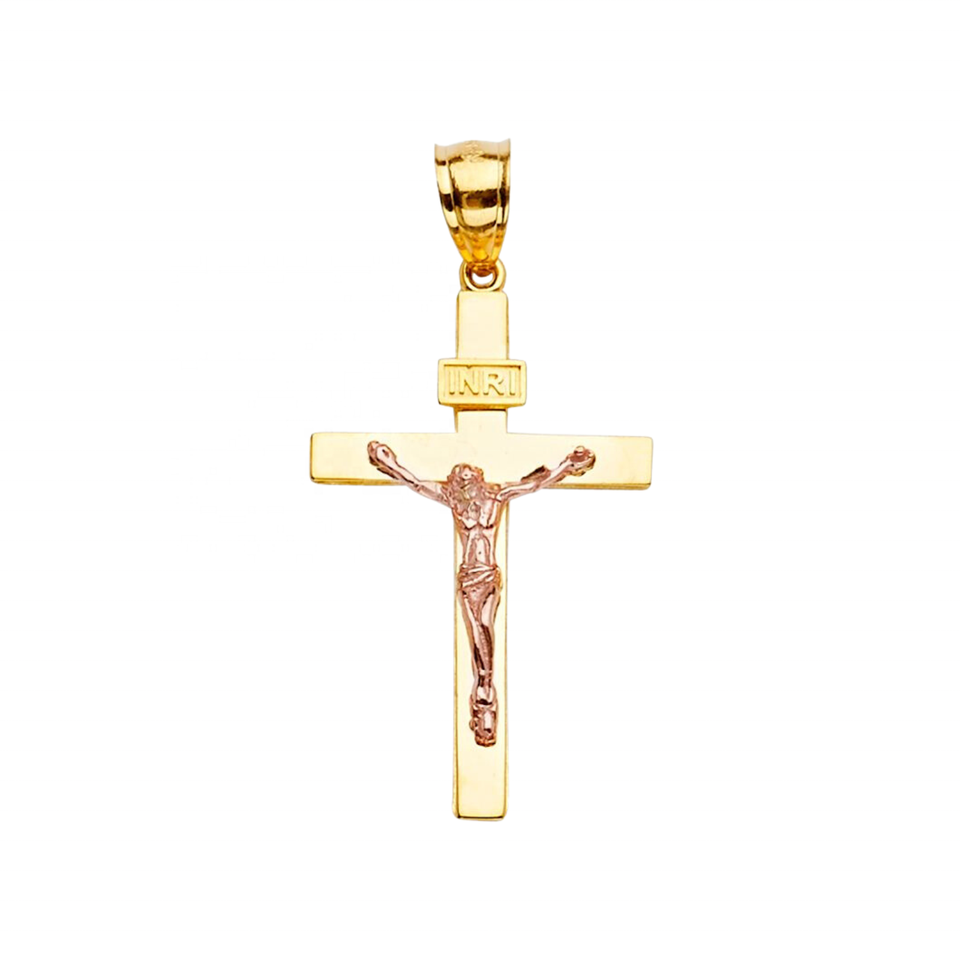 High Quality 14 Yellow Two Tone Plated Crucifix Cross Pendant Classic Modern Necklace Jewelry for Women Men Children Christian