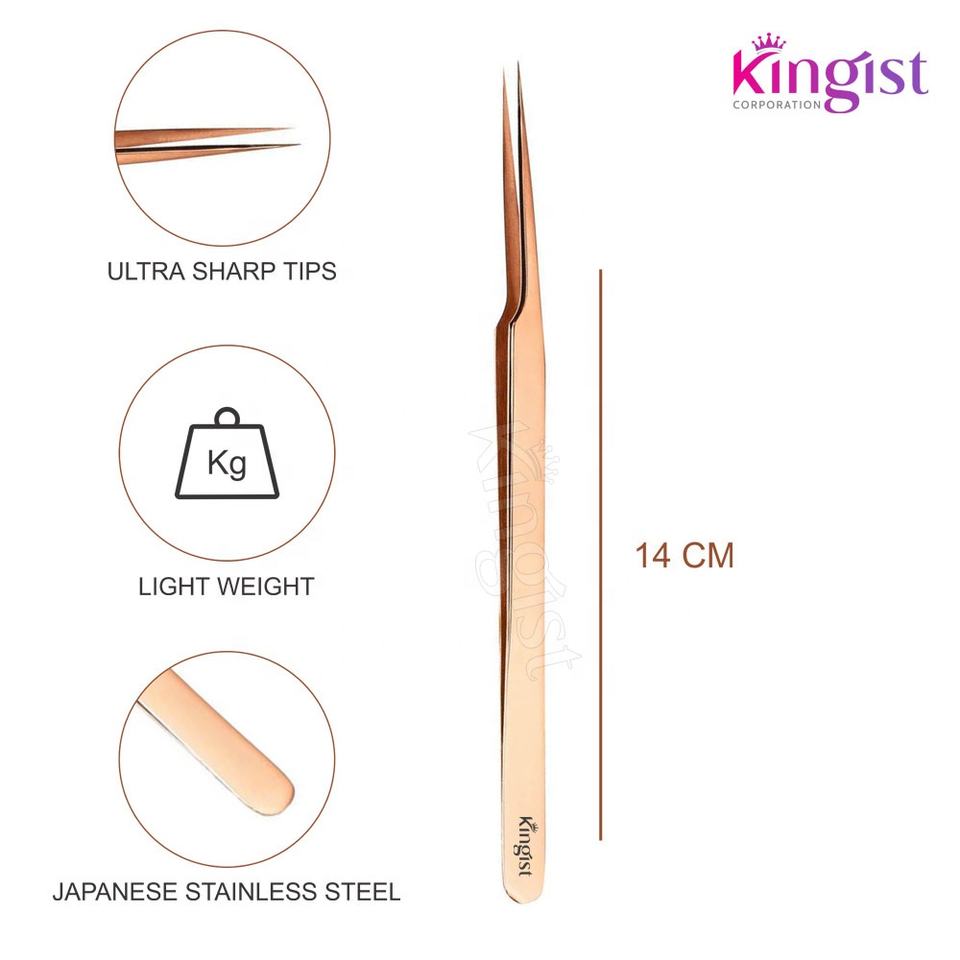 14 cm Long Slight Curved Stainless Steel Lash Extension Tweezers Pointed Tip Manufactured in Pakistan