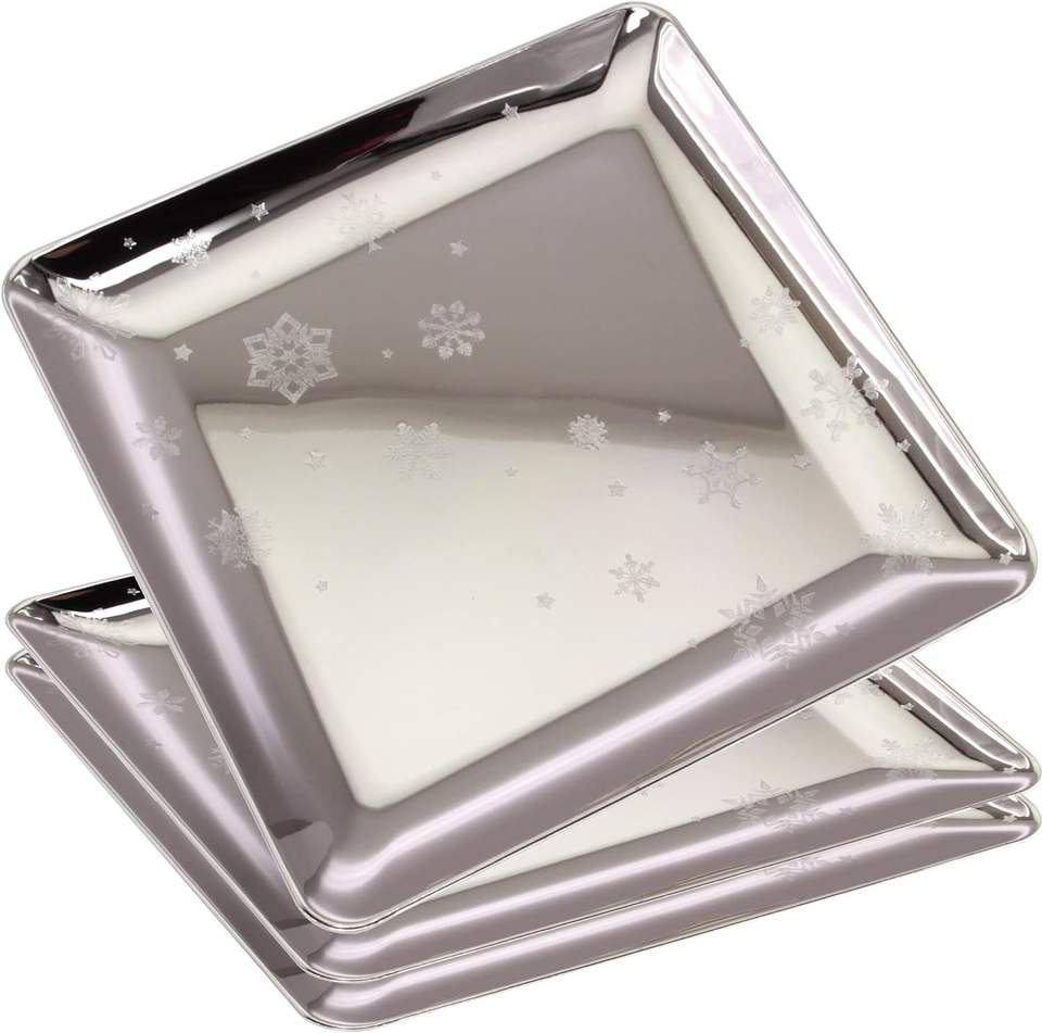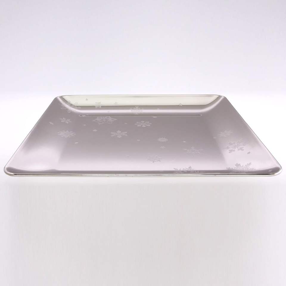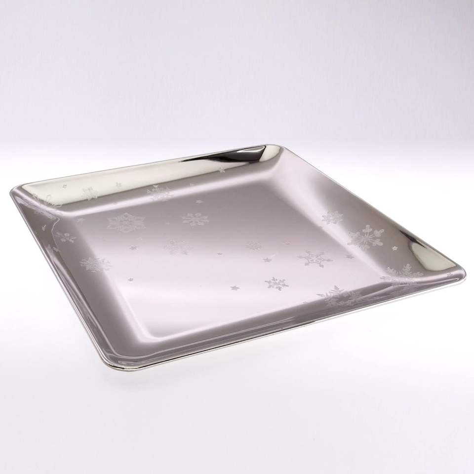 14 inch Square Chrome Plated Silver Serving Tray Stylish Floral Snowflakes Engraved Decorative Party Dessert Buffet Wine Platter