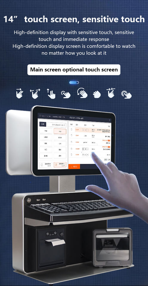 14 inch Touch Screen Kiosk Receipt POS All In One Machine Payment Terminal Retail Order With Keyboard Printer Scanner