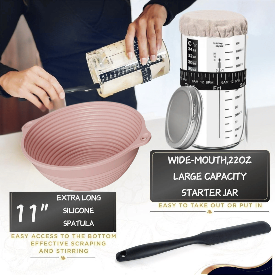 142pcs Sourdough Bread Baking Supplies Fermentation Basket 1 Pack22oz Sourdough Bread Fermentation Jar Complete Set for Bread