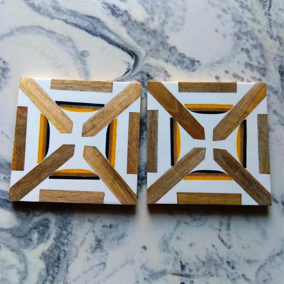 Product name:Bone And Brass Inlay Wood Coaster