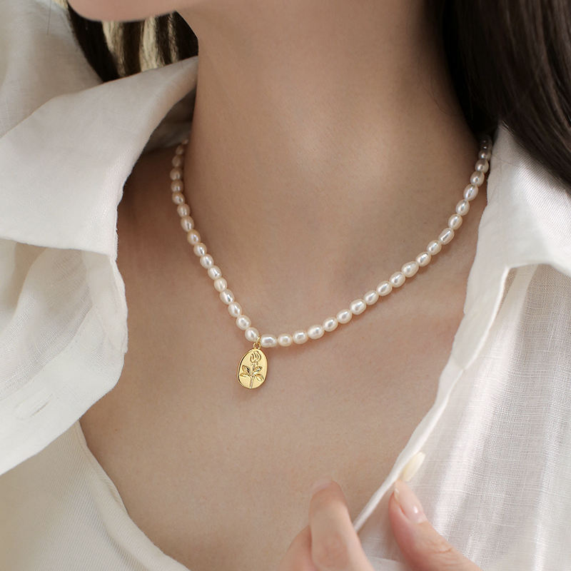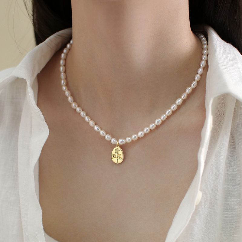 1467 Natural pearl necklace bead neck chain with rice pearl 6-7mm wholesale