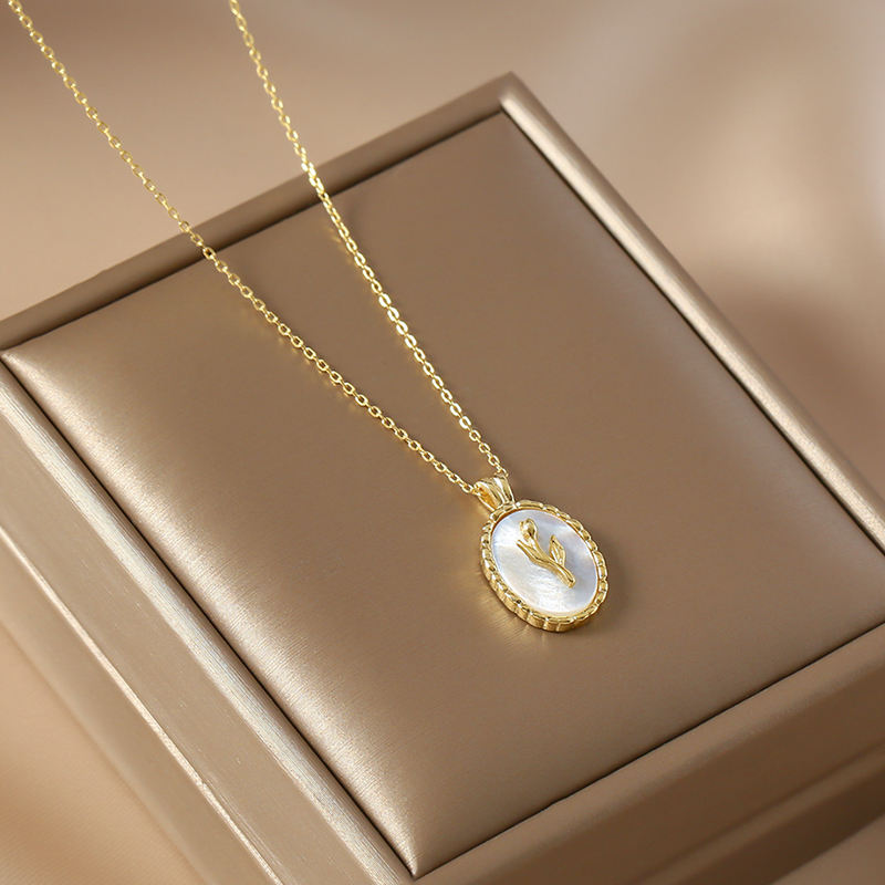 1469 S925 Sterling Silver Women's Vintage Necklace with White Round Natural Pearl MOP Pendant for Wedding/Party/Engagement