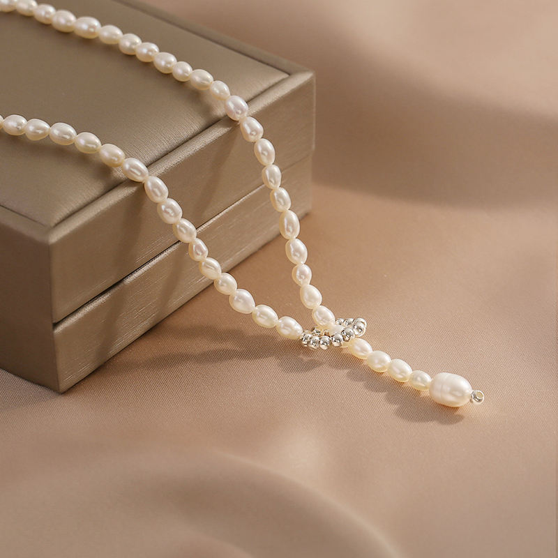 1476 Vintage Freshwater Pearl Necklace 925 Sterling Silver Chain