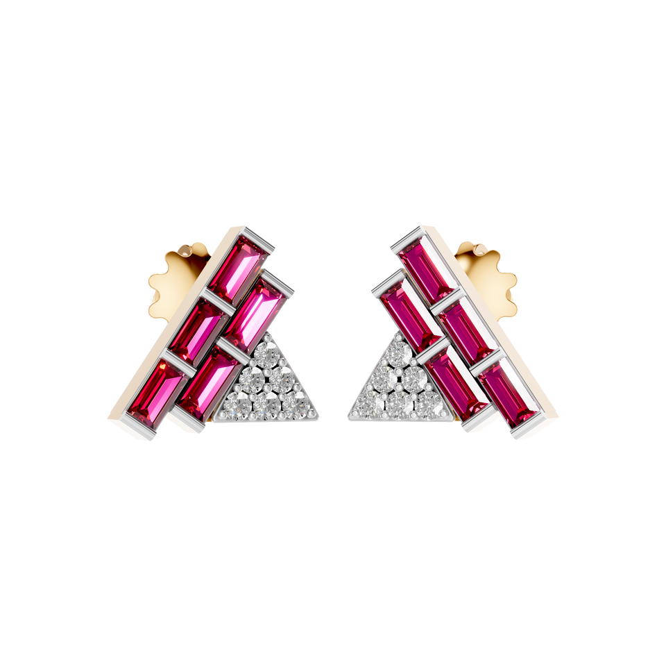 Style:Modern Geometric Emerald Gemstone and Diamond Stud Earrings