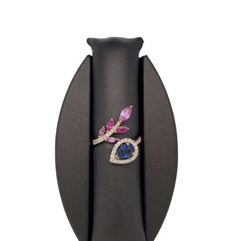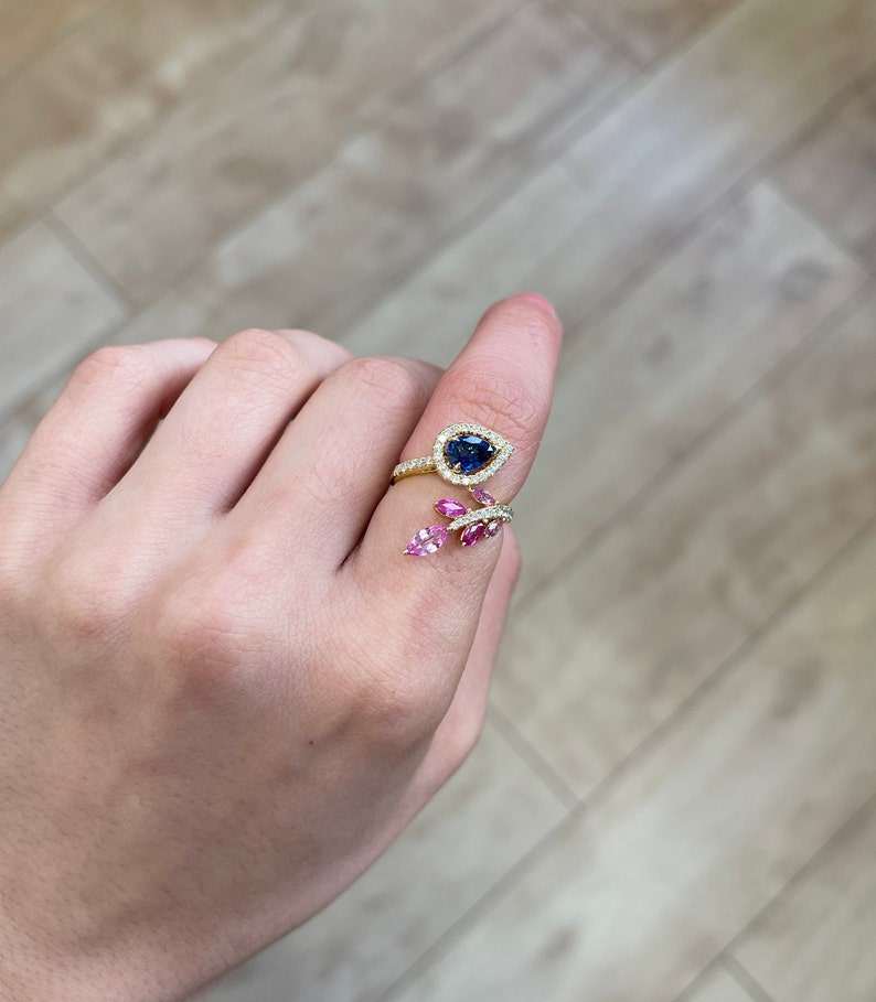 14K Gold Blue Sapphire Ring Luxury Leaf Design Band Ring 14K Gold Sapphire Gemstone Ring 14KSolid Gold Ring Wedding Promise Gift