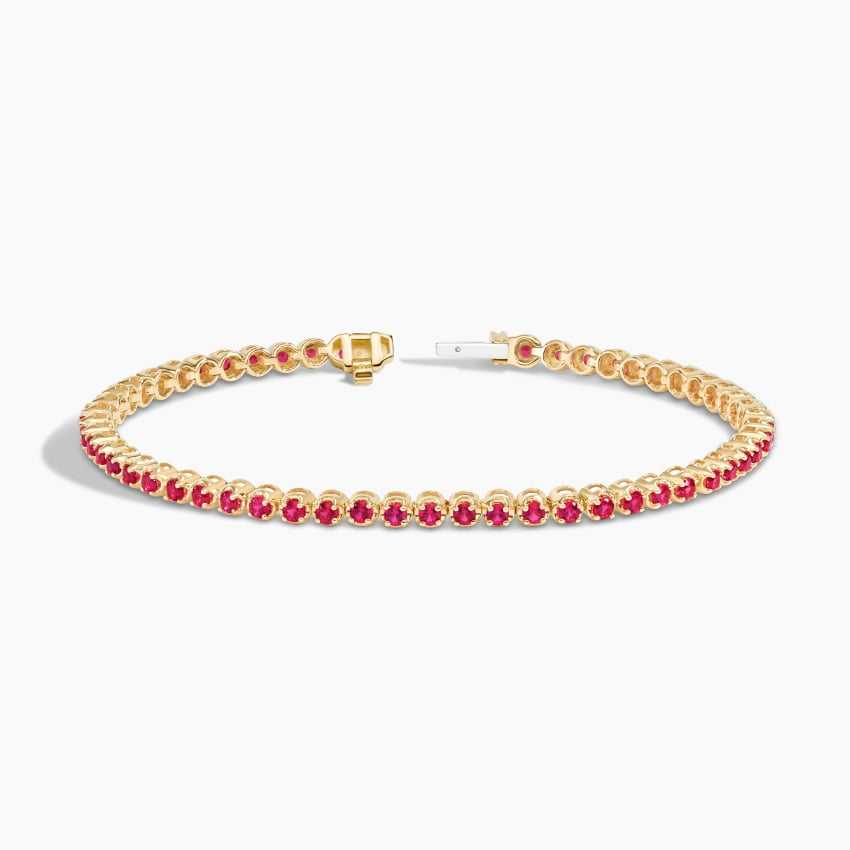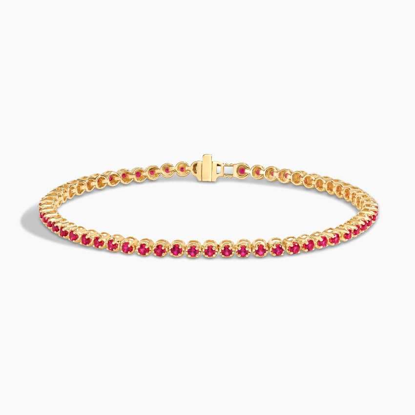 14K Gold Cut Lab Grown Ruby Gemstone Tennis Bracelet Trendy Style December Birthstone for Anniversary or Wedding Party Gift