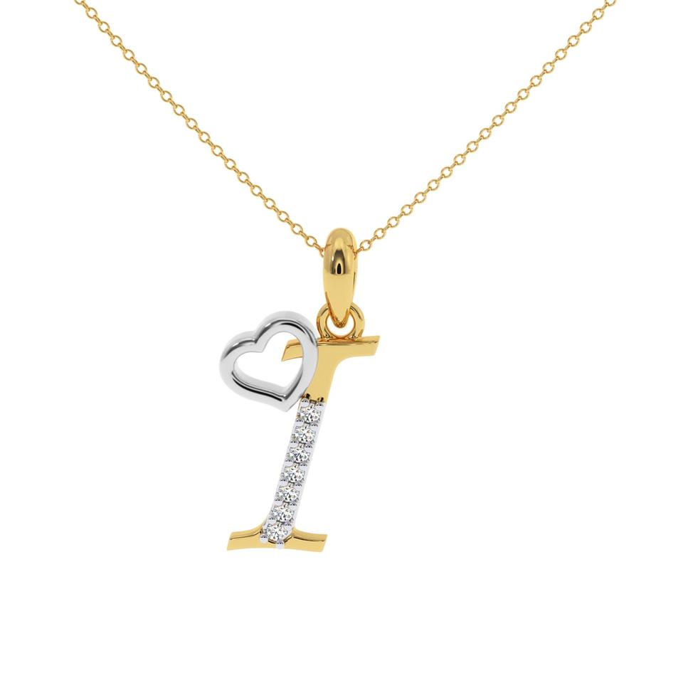14K Gold Lab Diamond Initial I Pendant with Round Brilliant Cut Beautiful Gift for Women