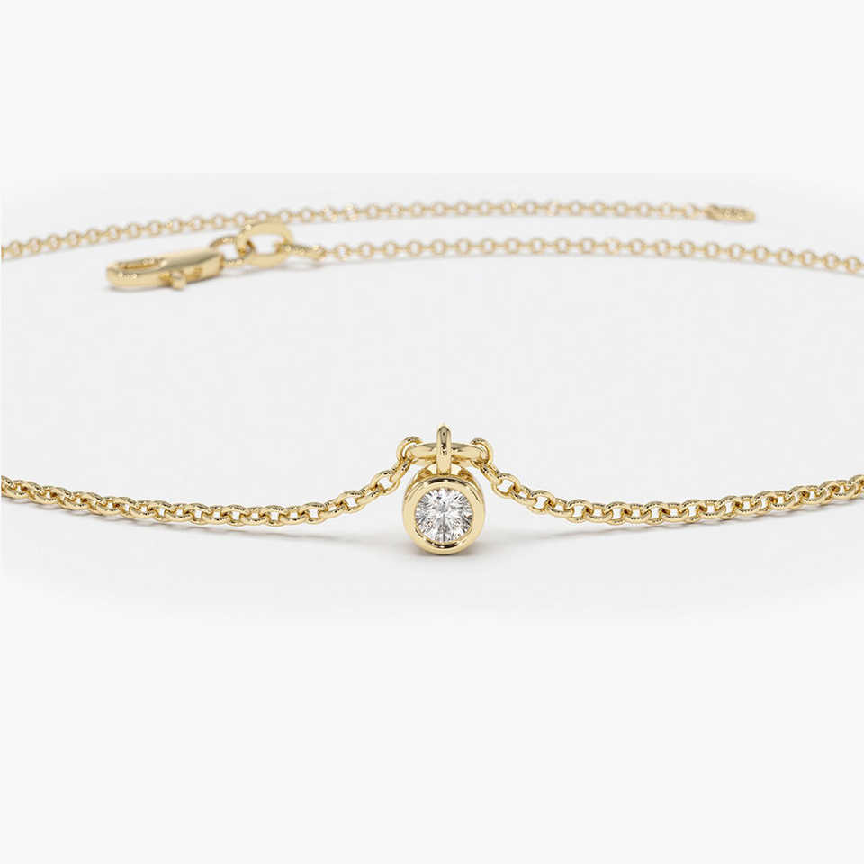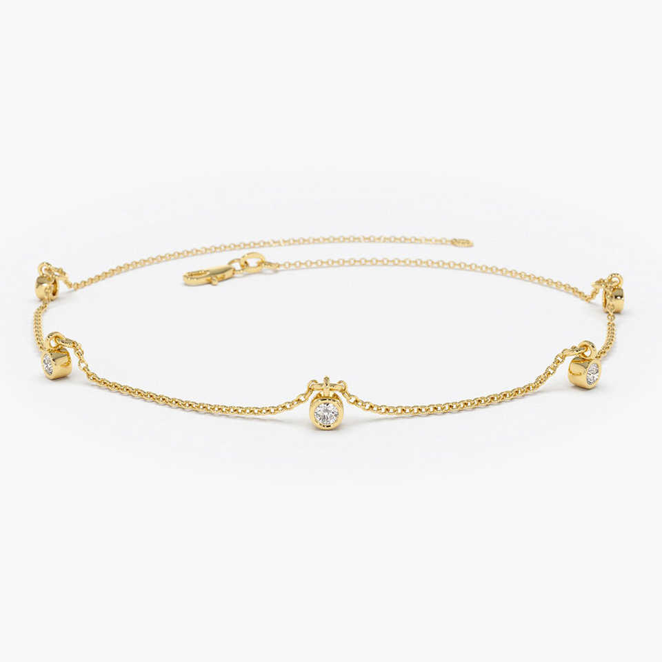 14K Gold Diamond by The Yard Dangling Solitaire Bracelet Top Quality 0.18Ctw Diamond Bracelet Bangle Fine Jewelry Gift for Women