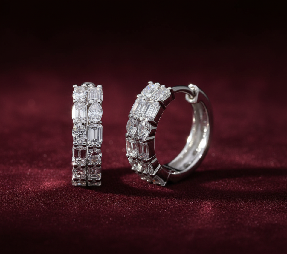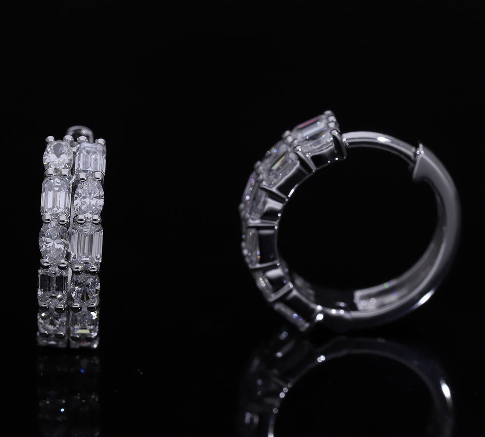 14K Gold Emerald Cut Lab Grown Diamond Rhodium Plated Hoop Earrings F VVS VS CVD Stones Elegant Luxury Women Jewelry