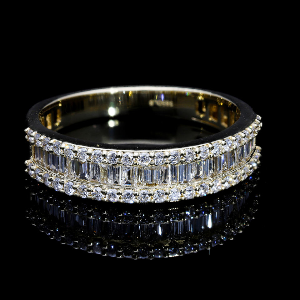 14K Gold F Lab Grown CVD Diamond Dual Row Baguette & Round Cut Filled Rhodium Plated IGI Certified 2.8g Band Ring for Women