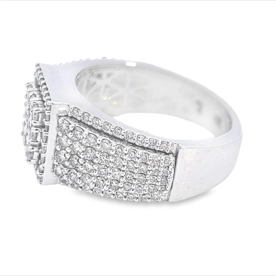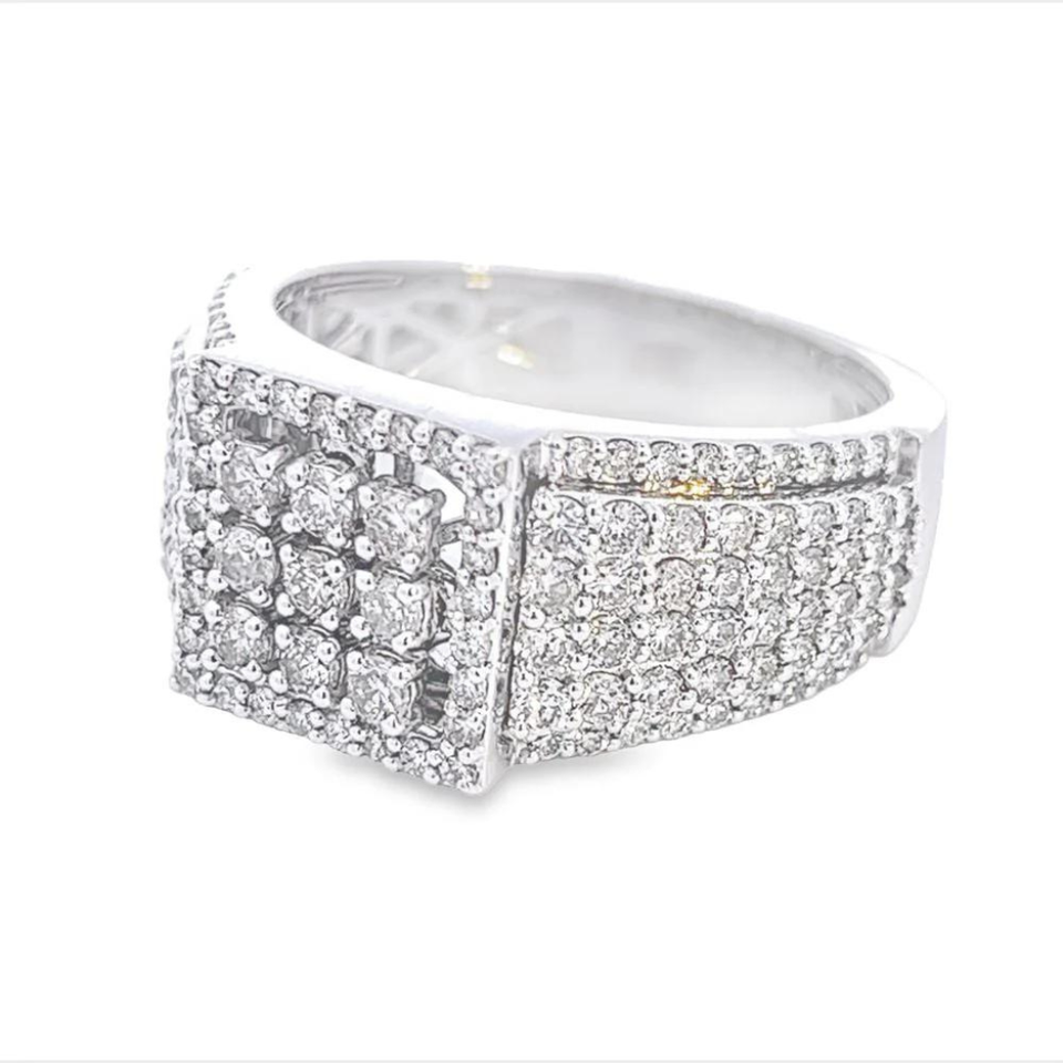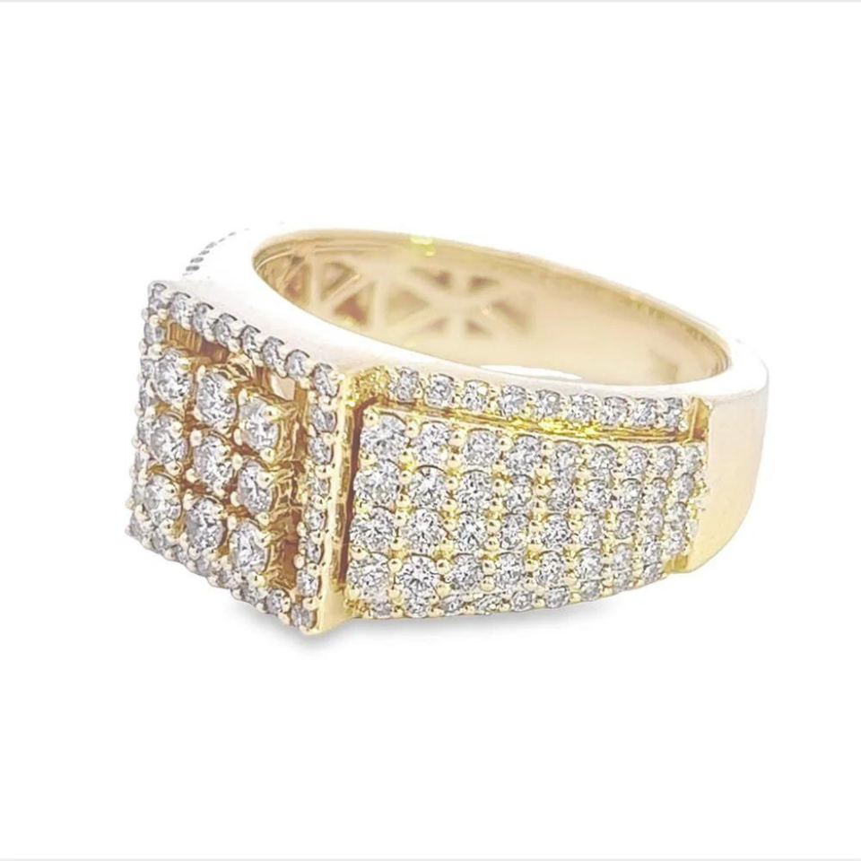 14K Gold Fine Ring New Square Design with Round Brilliant Cut Natural Diamond for HipHop Engagement or Wedding