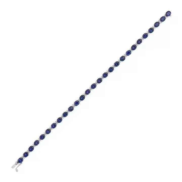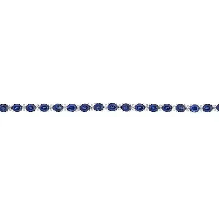 14K Gold High Quality Blue Sapphire Birthstone Cubic Zirconia Chain Oval Stone Gemstone Bracelet Moissanite Bracelets & Bangles