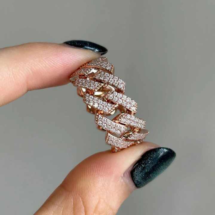 14K Gold Lab Created Diamond Hip-Hop Inspired Ring Rose Gold Filled Iced Out Link Chain for Women Men Fashion Jewelry