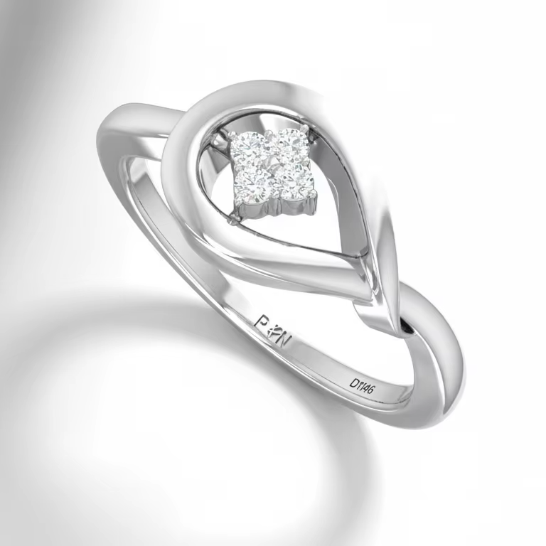 14K Gold & Natural Diamond Women's Luxury Swirl Ring with 4 Round Brilliant Cut Stones | 0.05Ctw Gold Plated Dailywear
