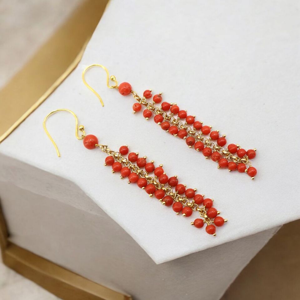14K Gold Natural Italian Coral round Clip-On Earrings Trendy Ball Pattern Beads Sizes 3MM to 6MM