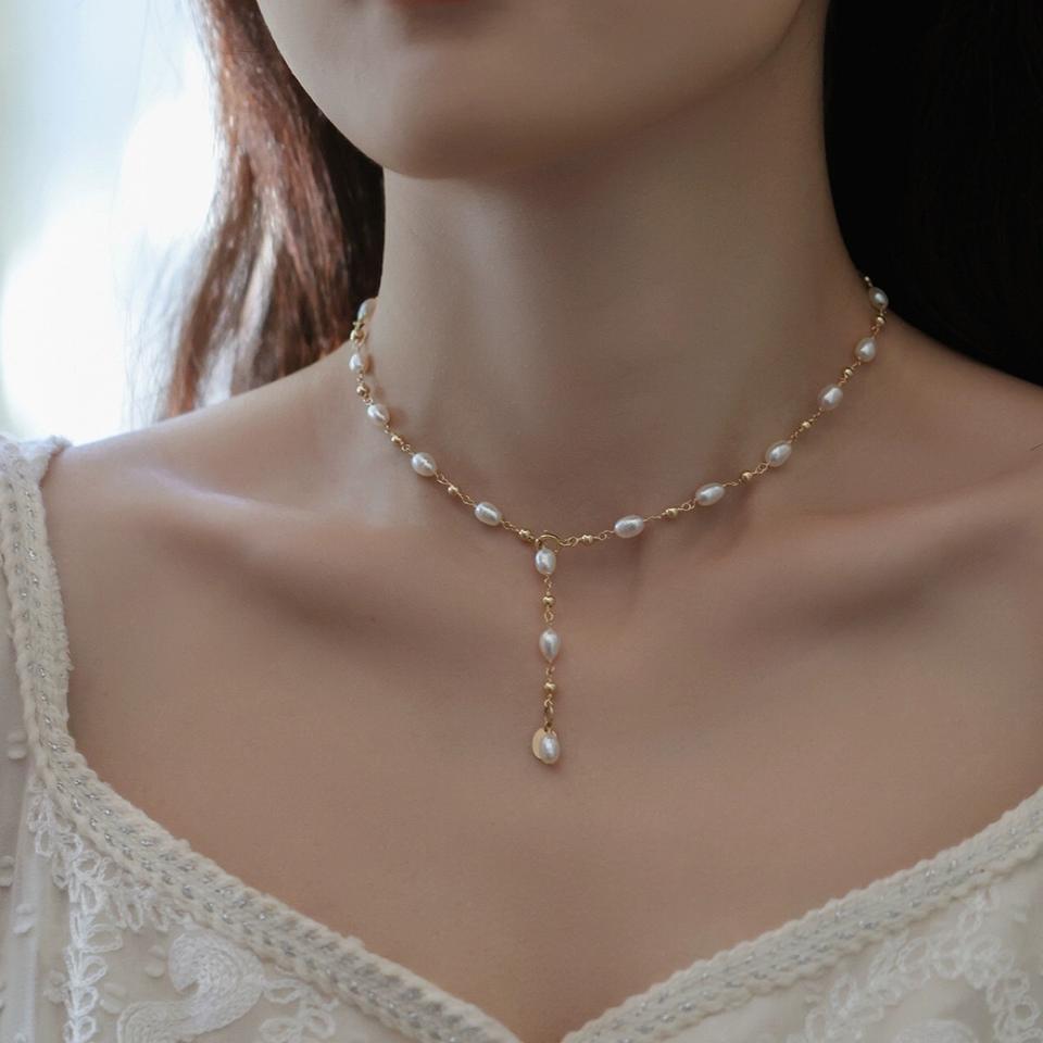 14K Gold-Plated Fairy Temptation Freshwater Pearl Necklace Light Luxury Commuting Small Rice Grains Unique Niche Design Inspired