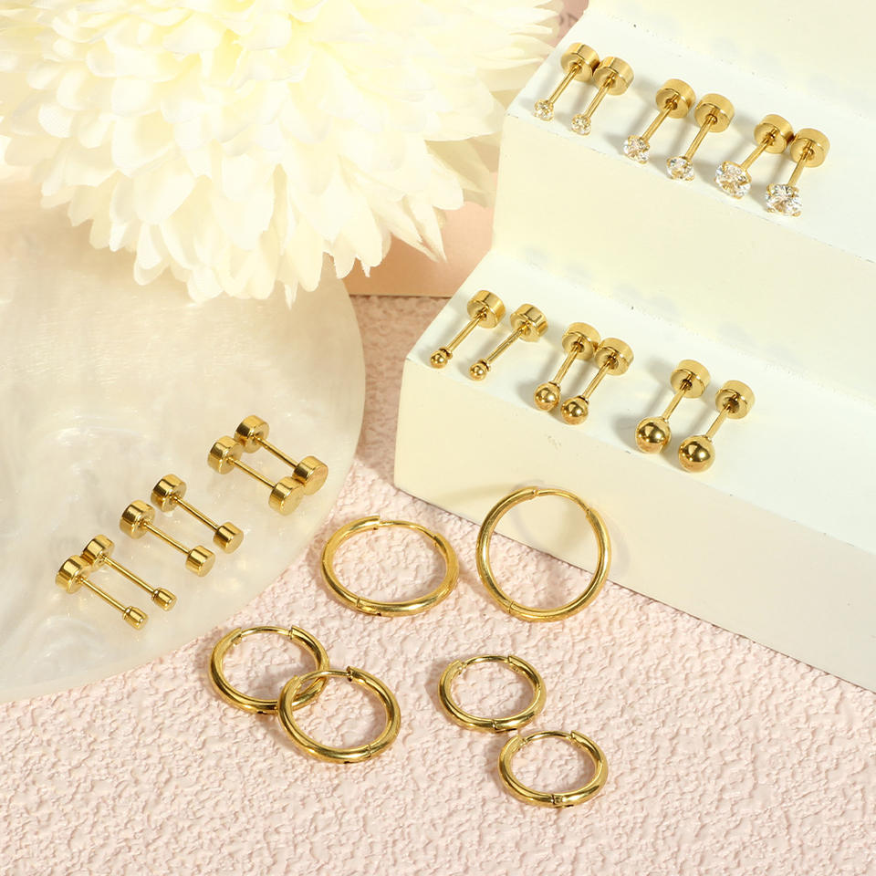 14K Gold Plated Flat Back Stud Earrings Small Hypoallergenic Surgical Stainless Steel Fashion Accessory for Women and Men