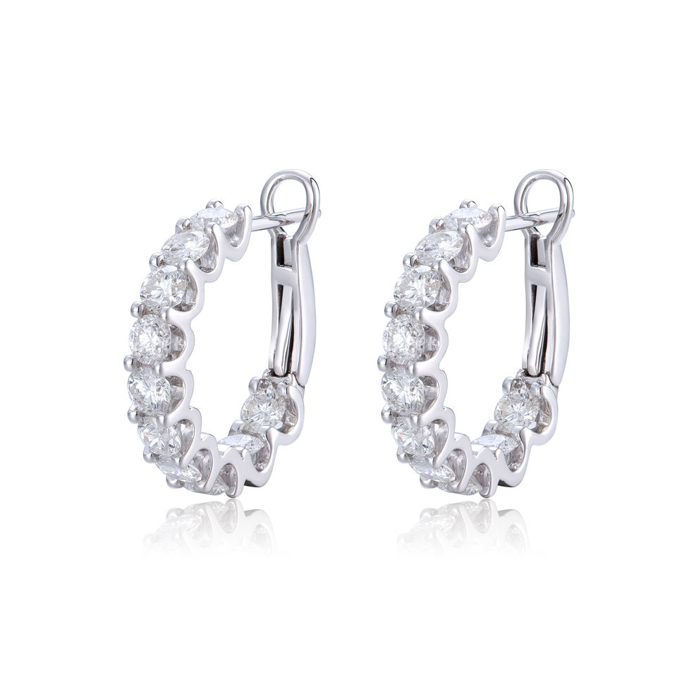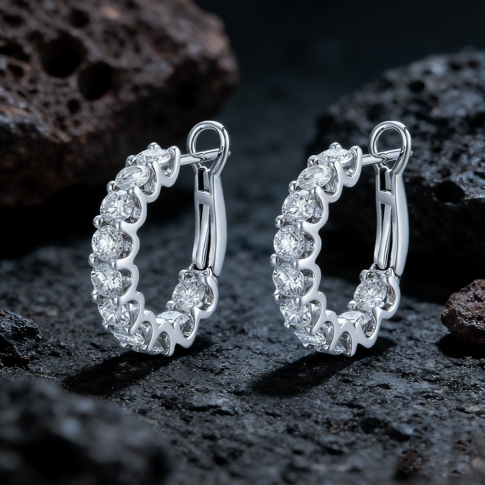 14K Gold Plated Lab Grown Diamond Hoop Earrings Round Brilliant Cut IGI Certified for Men Women Wedding Party Gift VS Quality