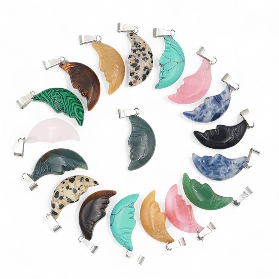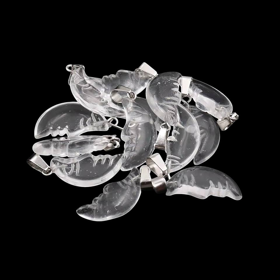 14K Gold Plated Natural Clear Quartz Pendant Hand Carved Crescent Moon Gemstone for Necklace & Jewelry Making