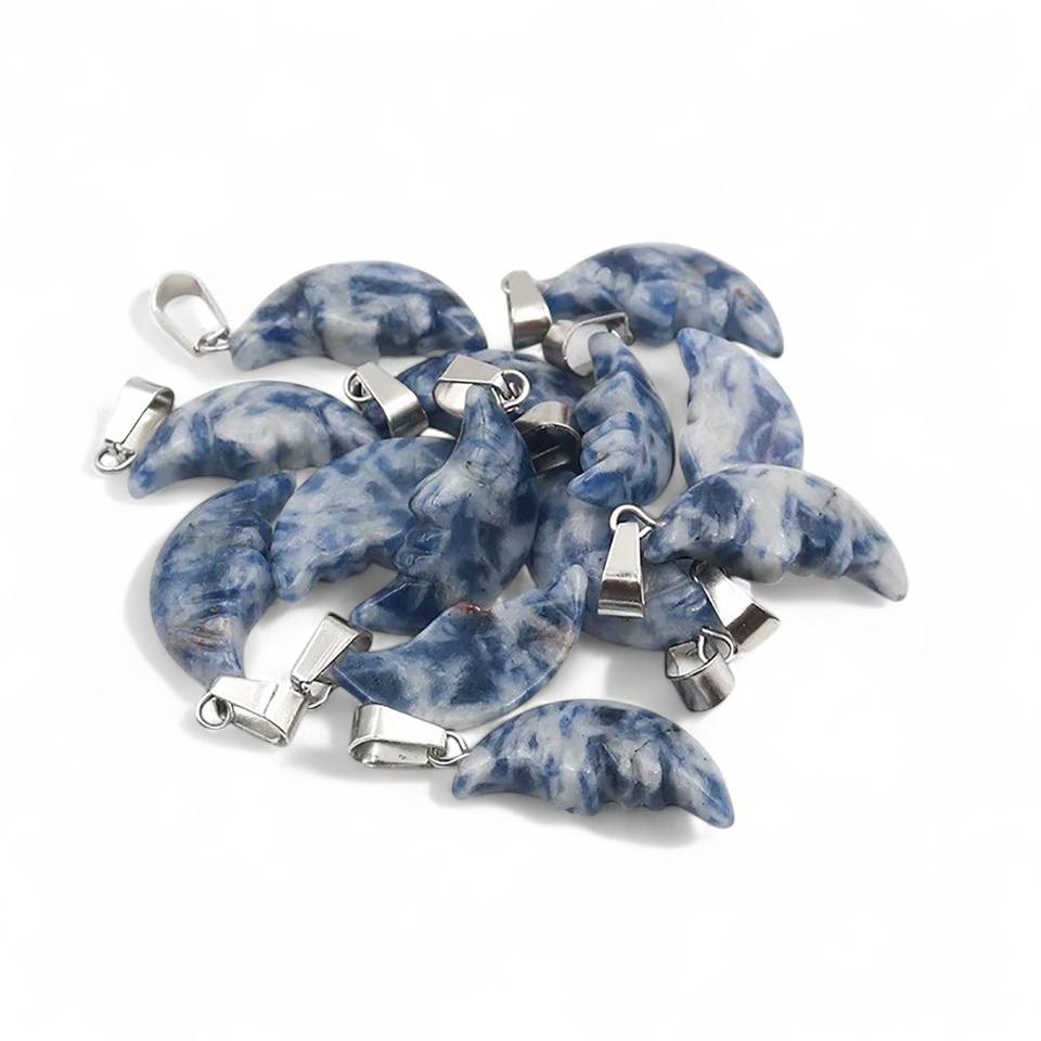 14K Gold Plated Natural Sodalite Pendant Hand Carved Crescent Moon Gemstone for Necklace & Jewelry Making